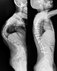«К нам он поступил с уже существенным искривлением позвоночника. Кифотическая деформация грудного отдела составляла более 100 градусов, а сколиотическая — более 90 градусов в грудном и поясничном отделах. Отмечались нарушения походки, а совокупность этих и других проблем пациента, связанных с основным диагнозом, сильно влияла на его качество жизни», — отмечает Андрей Андреевич .