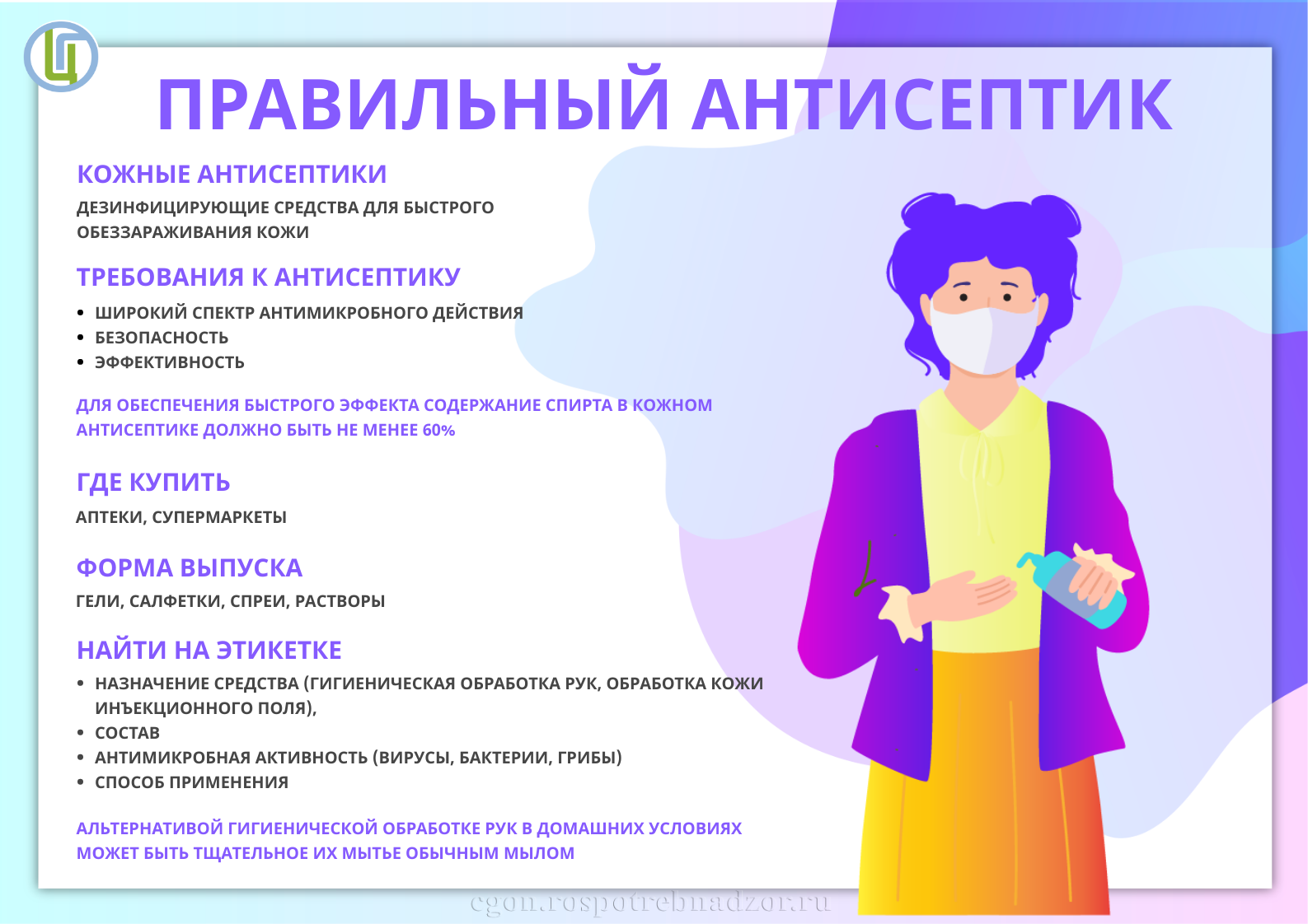 При невозможности вымыть руки с мылом, используйте кожные антисептики .