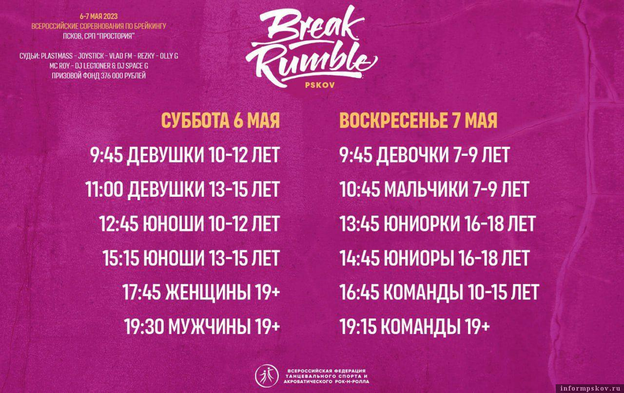 В Пскове пройдут всероссийские соревнования по брейкингу Break Rumble