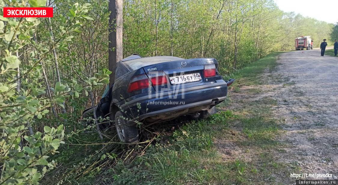 36-летний водитель автомобиля Mazda не справился с управлением и вылетел в кювет, столкнувшись с опорой ЛЭП, после чего оторвавшийся провод поджёг траву.