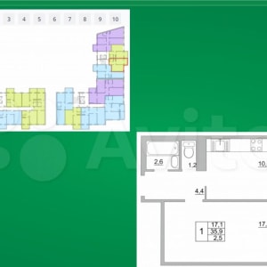 - общая площадь 38,4 кв.м., кухня - 10,6, жилая — 17,1, с/у-раздельный, лоджия 5 кв.м. (выход из кухни, остеклена);