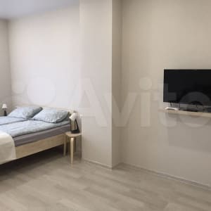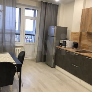 Сдается однокомнатная квартира (46 кв.м) со спальней-гостиной, оборудованной кухней и совмещенным санузлом.