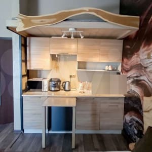 В студии 3 спальных места. (2+1) Дополнительное спальное место, рассчитано на вес до 90 кг, находится на втором уровне.
