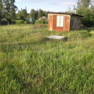участок 9 сот.имеется колодец,летний домик с печкой.сухой. 7км по гдовской трасе. торг
